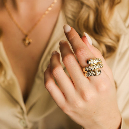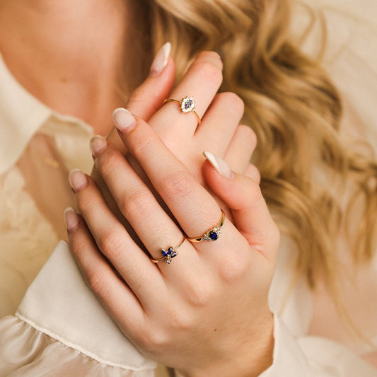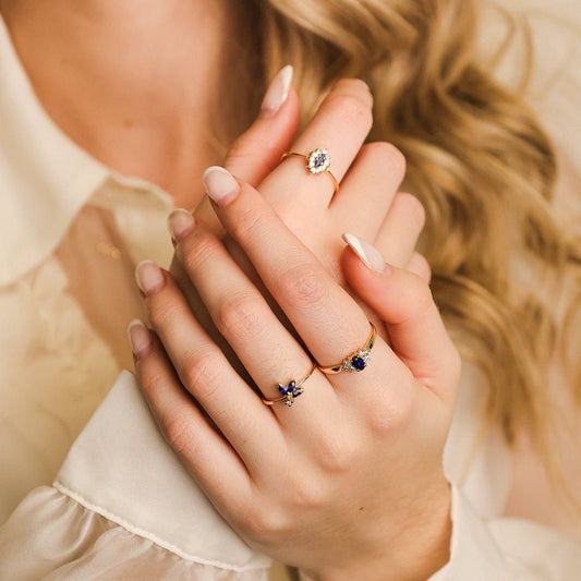 Anel em Ouro 19kl com Safiras e Zircónias (T17)