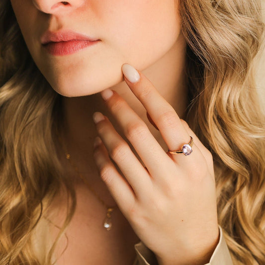 Anel em Ouro 19kl com Quartzo Lilás (T11)