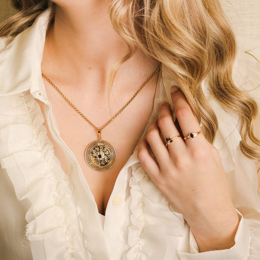 Medalha Floral em Ouro 19kl com Topázio Azul e Zircónias