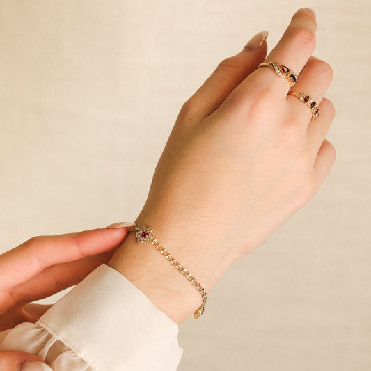 Pulseira Flores em Ouro 19kl com Rubi e Zircónias (17.5cm)