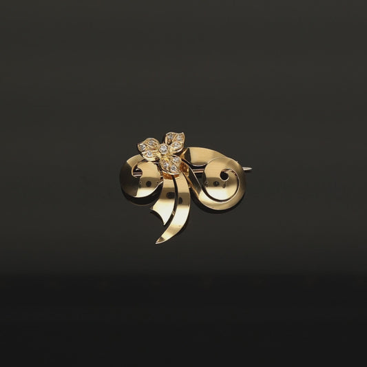 Alfinete de Peito Floral em Ouro 19kl com Diamantes