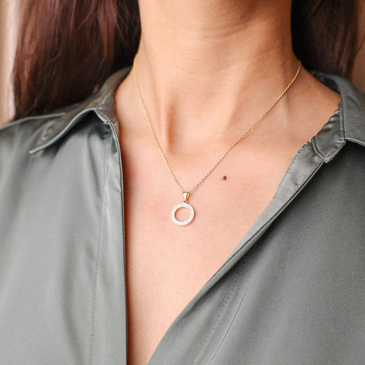 Fio em Prata Dourada com Circulo cravejado de Zircónias