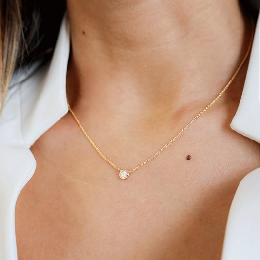 Fio em Prata Dourada com Pendente Zircónia (40cm)