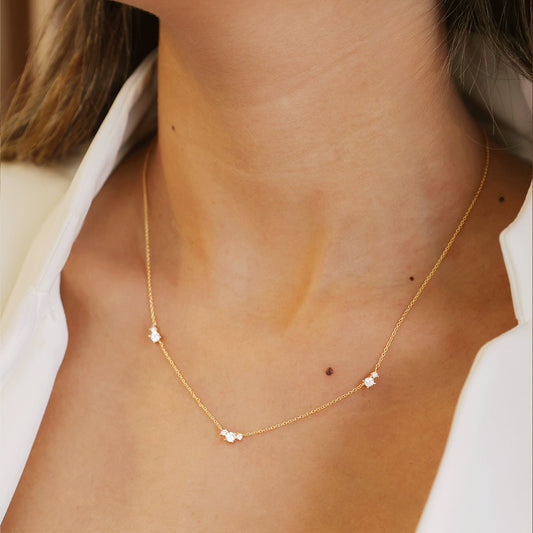 Fio em Prata Dourada com Coração Estilizado e Zircónias