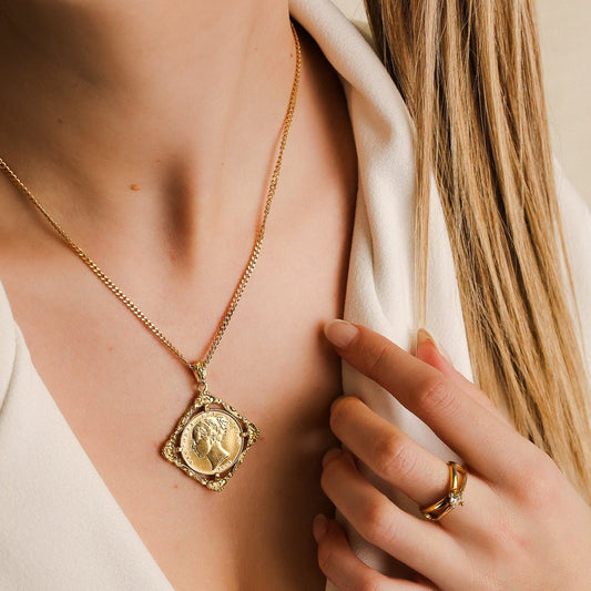 Libra Rainha Victoria (1884) em Ouro de 22kl com Aro Simples em Ouro 19kl