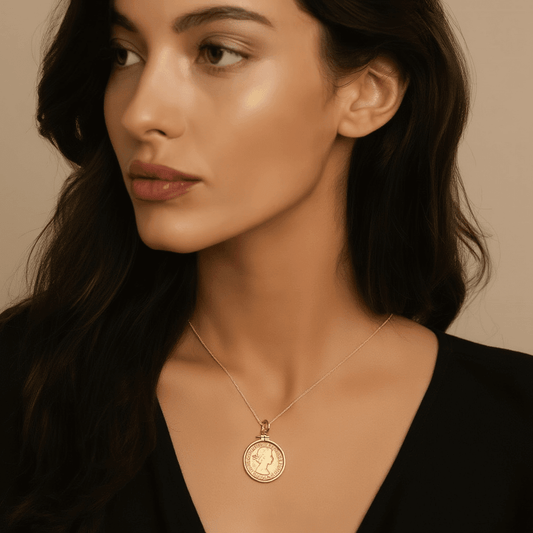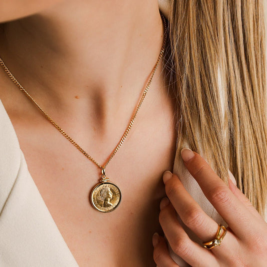 Meia Libra Rainha Isabel II (2000) em Ouro 22kl com Aro Meia Lua em Ouro 19kl