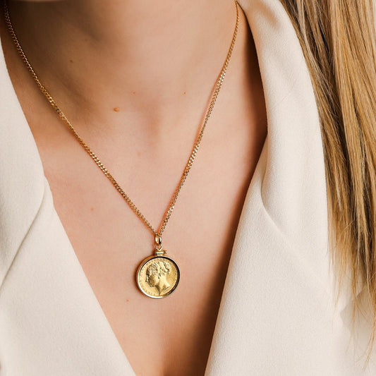 Libra Rainha Victoria (1871) 22kl com Aro tipo Corrente em Ouro 19kl