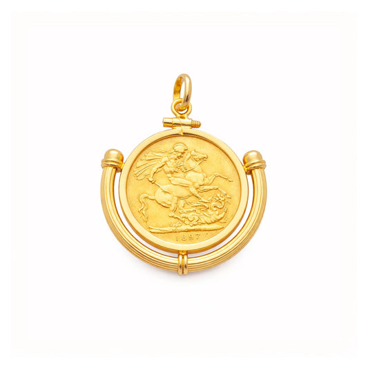 Libra Rainha Victoria (1898) em Ouro 22kl com Aro Meia Lua em Ouro 19kl