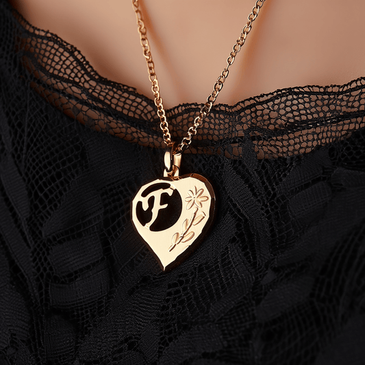 Medalha Coração em Ouro 19kl com Letra F (1.7cm)