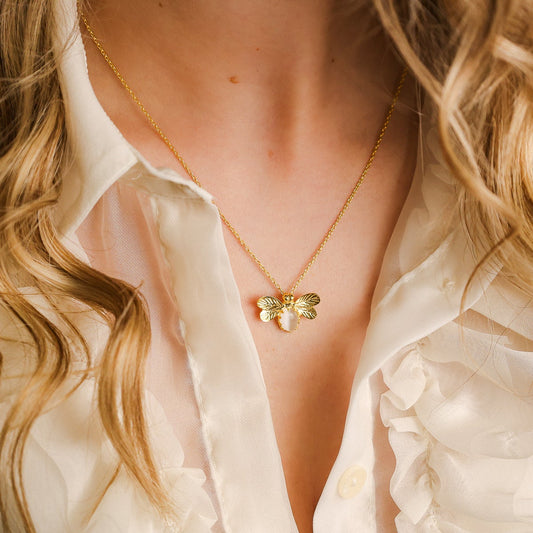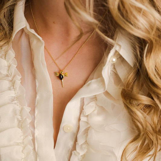 Fio Abelha em Prata Dourada com Pedra Hidrotermal