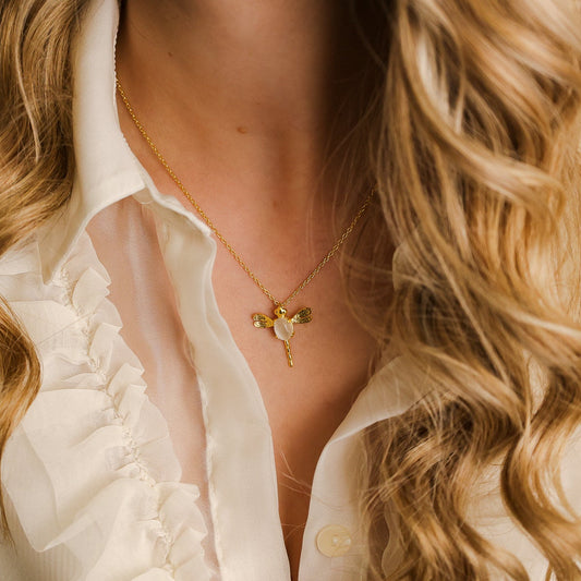 Fio Libelinha em Prata Dourada com Pedra Hidrotermal