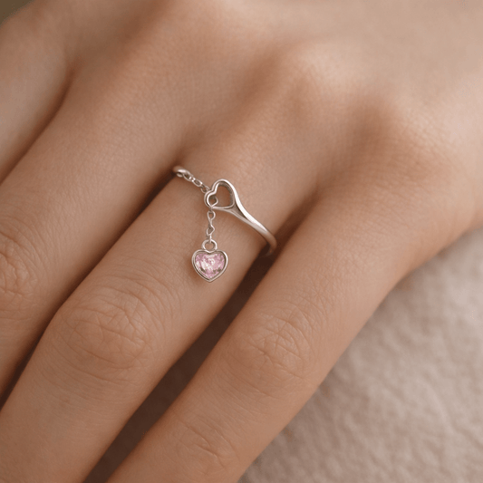 Anel em Prata com Pendente Coração Rosa