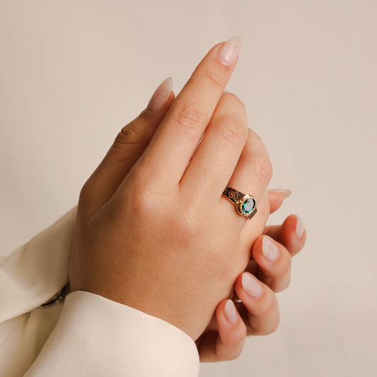 Anel de Curso Solicitadoria e Mediação em Ouro 19kl com Zircónia Verde (T15)