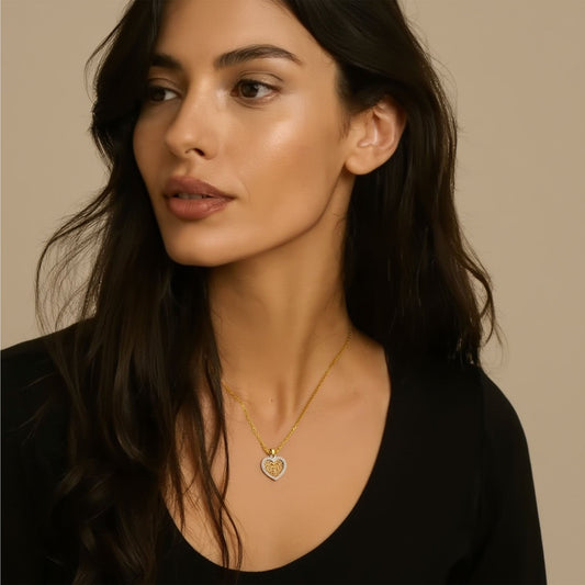 Medalha Coração Bicolor em Ouro 19kl ladeado de Zircónias