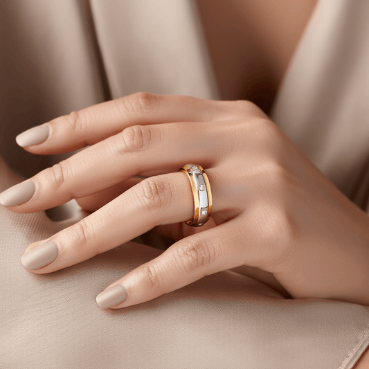 Anel Bicolor em Ouro 19kl com Diamantes (T15)