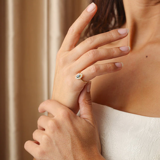 Anel Chuveiro em Ouro 19kl com Topázio e Diamantes (T8)