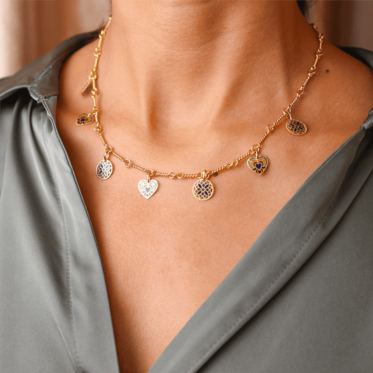 Gargantilha Corações em Ouro 19kl com Safiras e Zircónias (44,5cm)