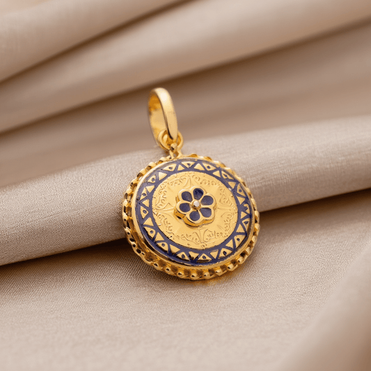 Medalha em Ouro 19kl com Esmalte Azul e Motivos Florais