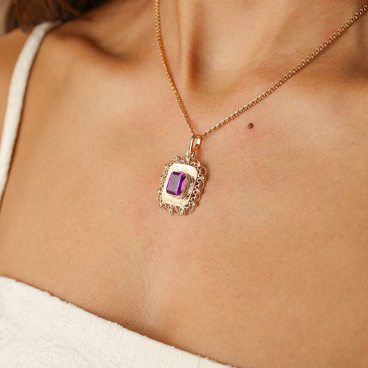 Medalha Rendilhada em Ouro de 19kl com Topázio Roxo