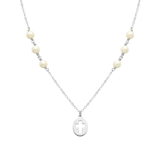 Fio em Prata com Cruz e Pérolas
