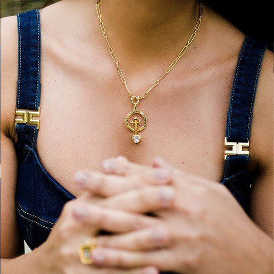 Fio Tradição em Prata Dourada com Coração de Viana e Esmalte Azul