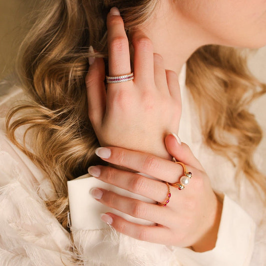 Anel Fino em Prata Dourada com Zircónias Rosa