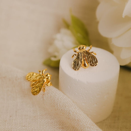 Brincos Abelha em Prata Dourada