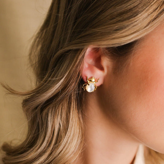 Brincos Escaravelho em Prata Dourada com Pedra Hidrotermal