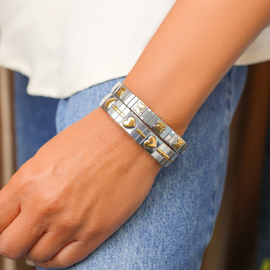 Pulseira Love White em Aço Inoxidável Dourado com Corações