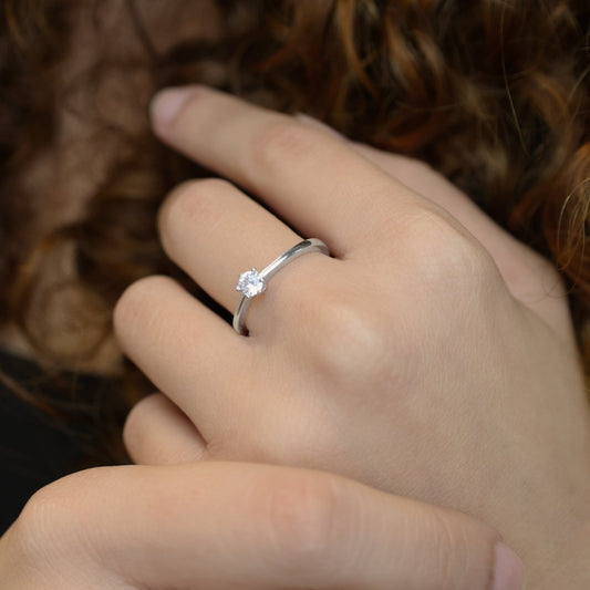 Anel Solitário Anabela em Prata com Zircónias (6mm)