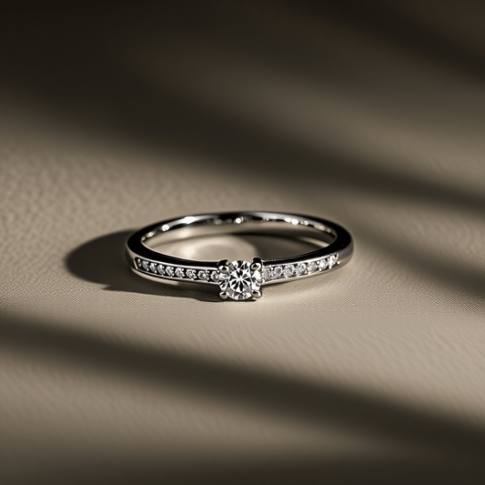 Anel Solitário em Ouro Branco de 19kl com Diamantes (T15)