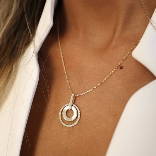 Fio Circulo Duplo em Prata com Madreperola e Zirconias
