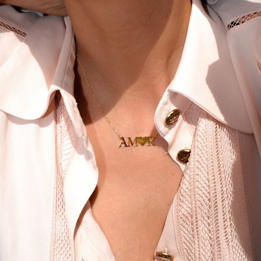 Fio em Prata Dourada com Coração Estilizado e Zircónias