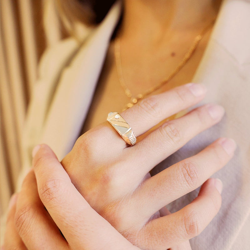 A alternância entre as tonalidades do ouro amarelo e branco é realizada de maneira graciosa, contribuindo para a estética refinada do anel. A fusão dos dois tons de ouro cria um visual moderno e atemporal, permitindo que esta joia seja usada com elegância em qualquer ocasião especial.