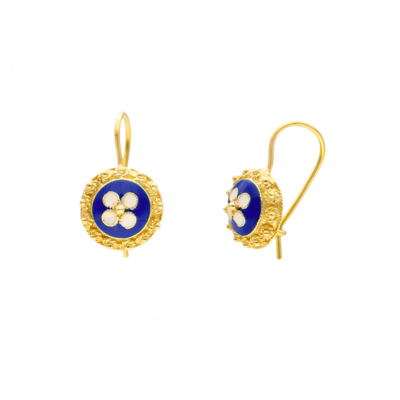 Brincos Tradição em Prata Dourada 925, com Caramujos e Motivos florais em esmalte colorido. Inspirados na tradição dos azulejos portugueses.