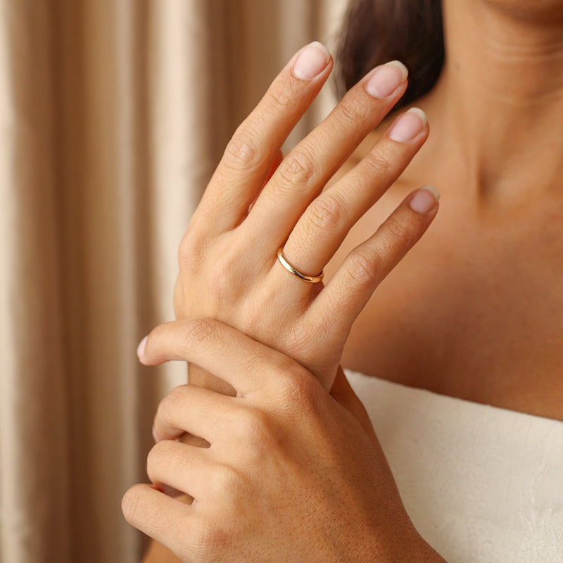 The half-round shape is chosen not only for its simple and elegant design, but also for its comfort for daily wear. This style of ring is known for providing a comfortable fit on the fingers.