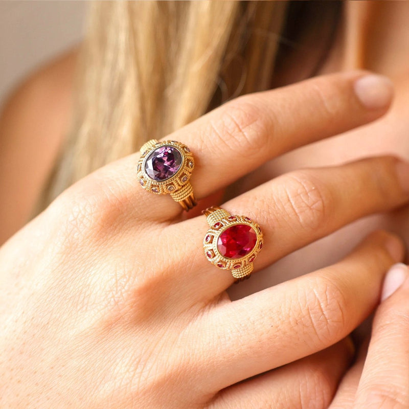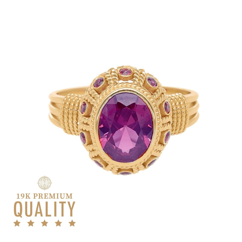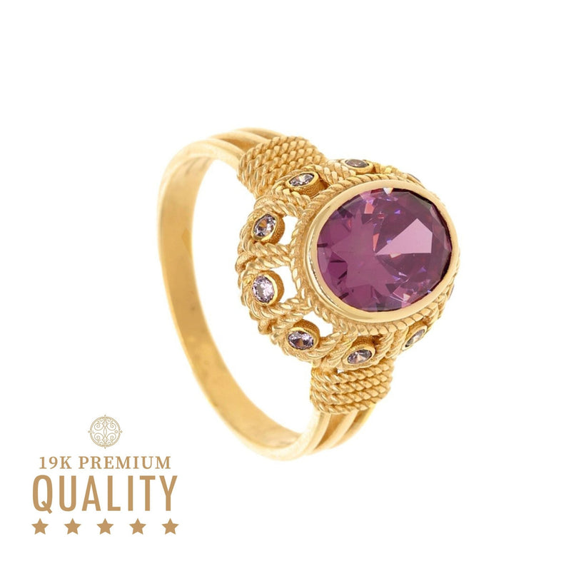 Baroness Ring in 19k Gold with elegant work and adorned with Amethyst-toned Stones