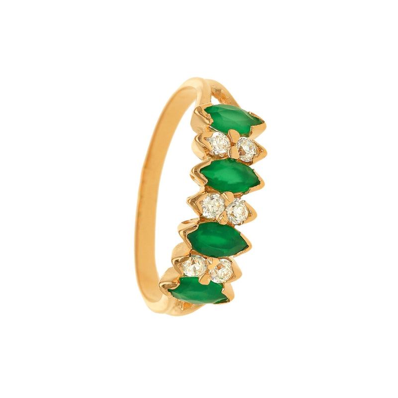 19kt Gold ring adorned with Zirconias and Green Stones in navette cut.
