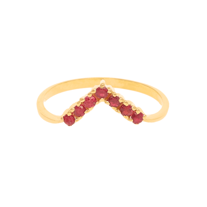 Full of charm and elegance, the ruby tiara ring is a jewel that exudes romance and sophistication. With a design inspired by royal crowns, this 19k gold ring features a delicate tiara where rubies stand out, bringing intensity and color to the piece. Each stone is carefully set to enhance the vibrant glow of red, a symbol of passion, love, and protection.