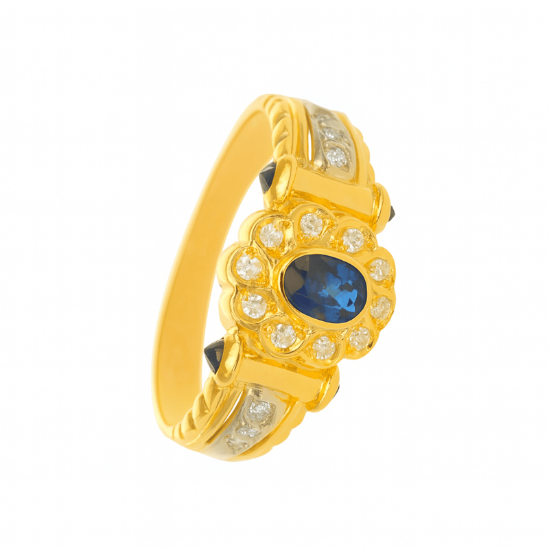19.2k Gold Ring adorned with Sapphires and Diamonds
