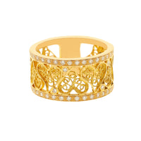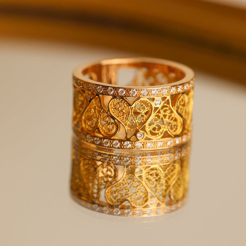 Anel Corações Rendilhados Filigrana em Ouro 19.2kl com Diamantes (T15)