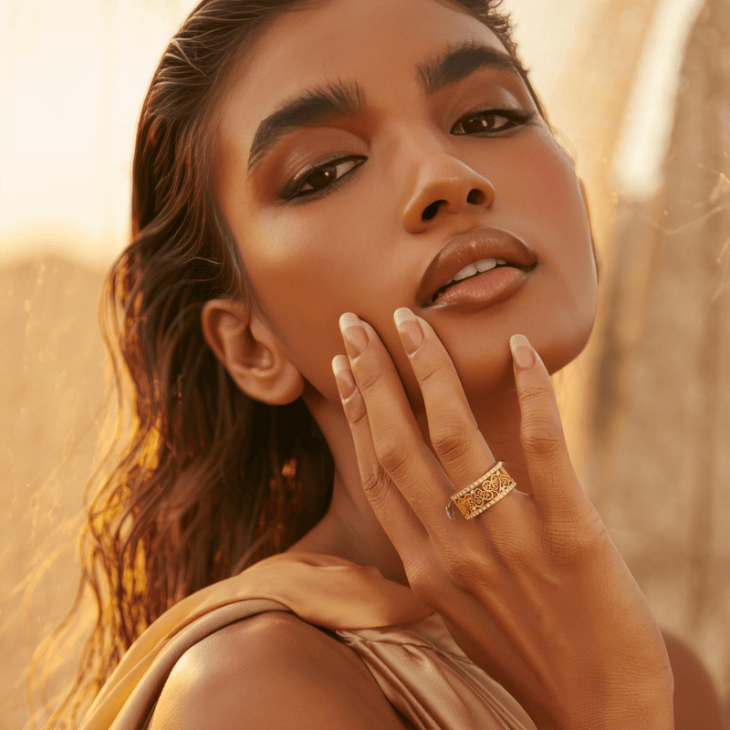 O Anel Corações Rendilhados em Filigrana com Diamantes, assinado pelos Irmãos Leitão, é uma obra-prima da joalharia portuguesa onde tradição e luxo se encontram em perfeita harmonia. Esta joia delicada é composta por corações entrelaçados em filigrana, trabalhados com precisão artesanal que revela séculos de saber-fazer. Os pequenos diamantes incrustados entre os rendilhados conferem brilho subtil e refinado, elevando ainda mais a sofisticação da peça.
