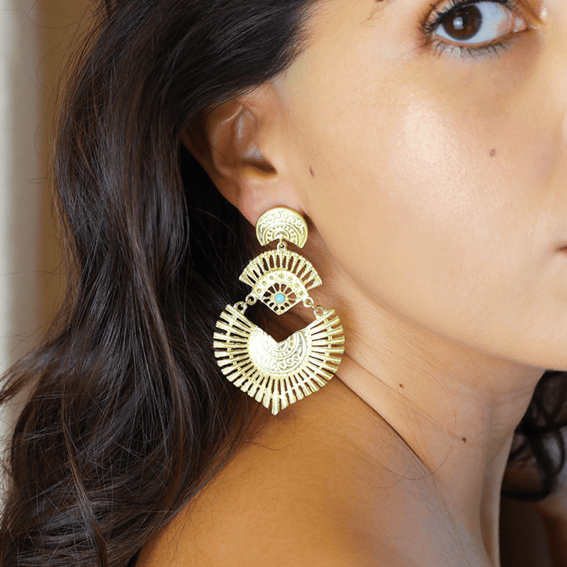 Aurora earrings in 925 Gold Plated Silver and Aqua pearl - Colação Iluminar. Made in Portugal.