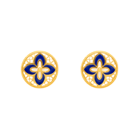 The Brilho da Mouraria Earrings in 925 Gold-Tone Silver enchant with their delicate flower motif in blue and white enamel , evoking the timeless beauty of the Portuguese tiles that fill the streets of Mouraria with color and history. This piece celebrates the soul of one of Lisbon's most traditional neighborhoods, where fado echoes and the facades tell legends in floral patterns.