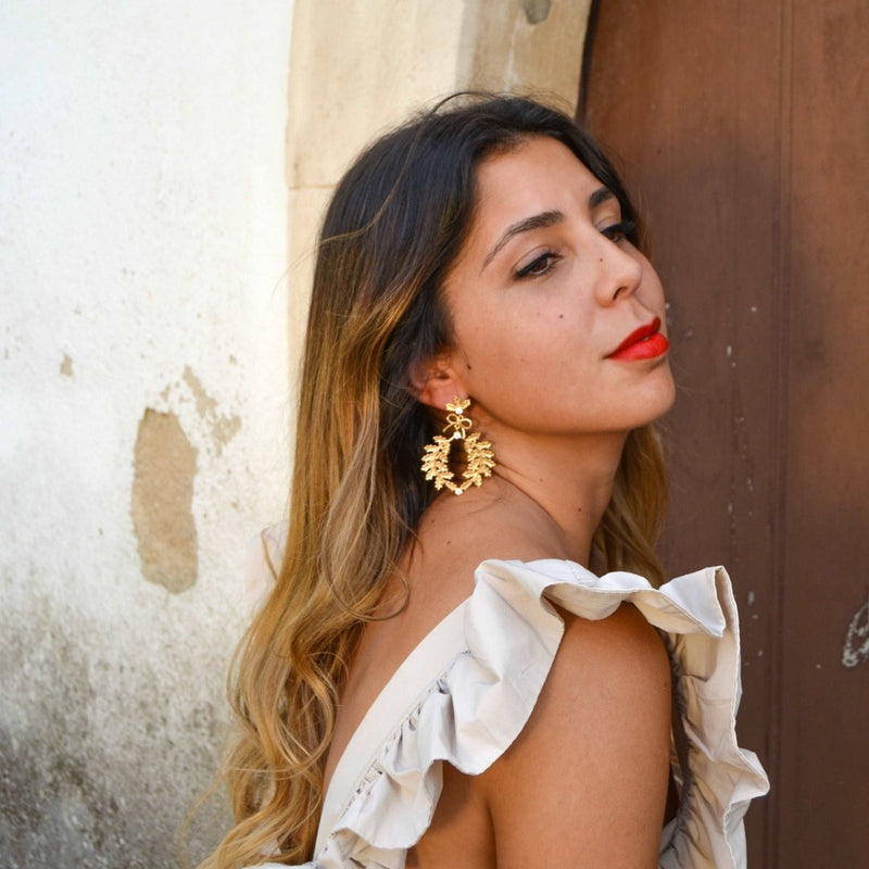 925 Gold Silver Crown Earrings adorned with Zirconias.