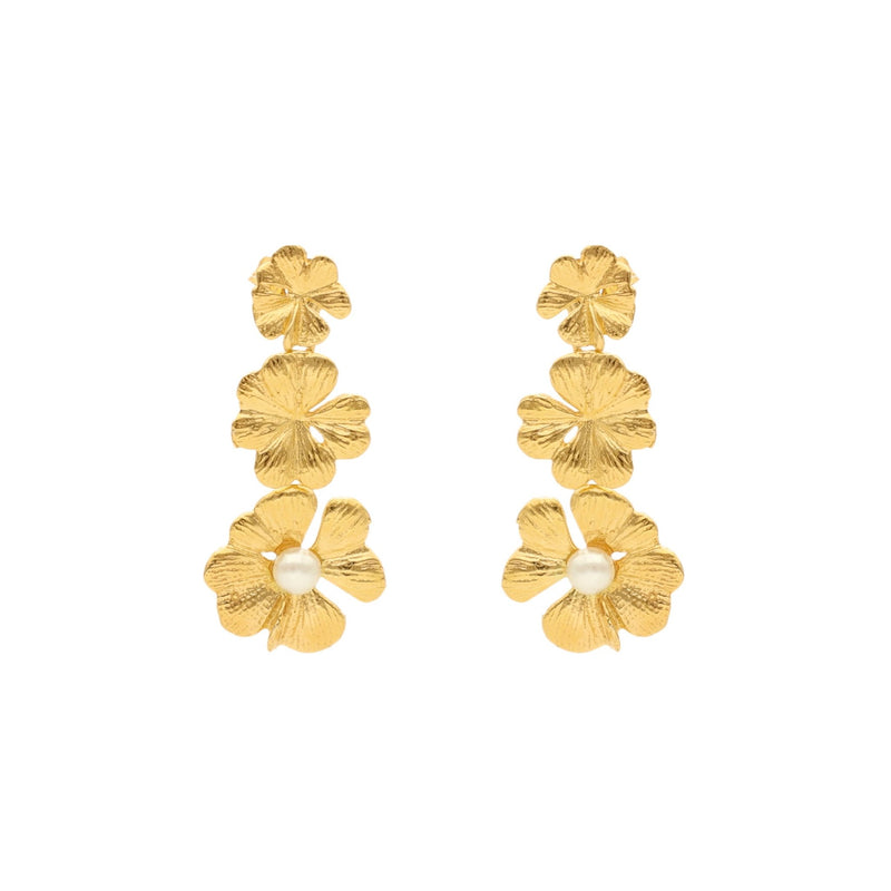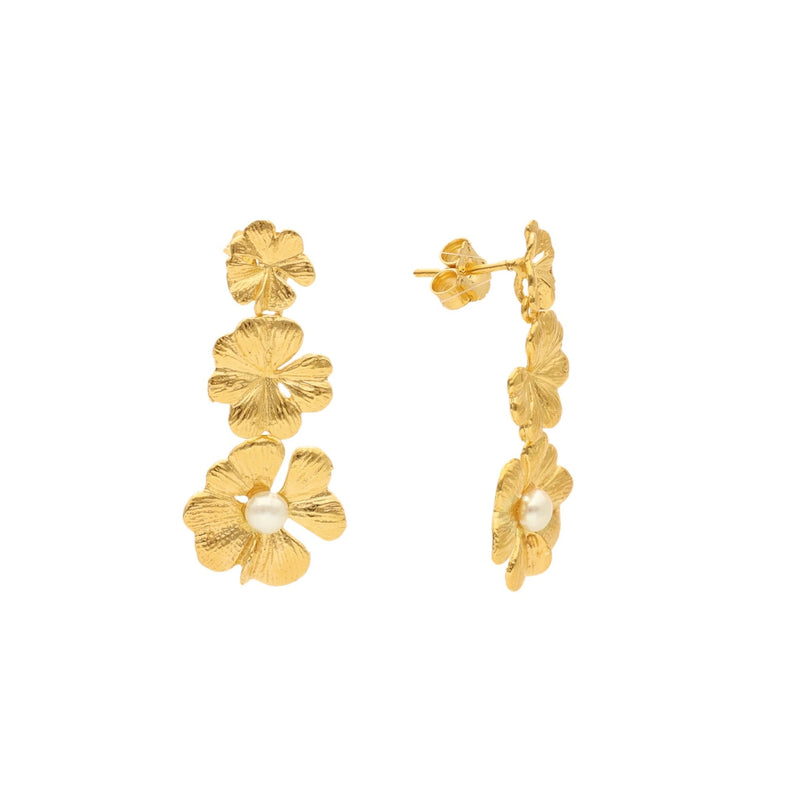 Gold Plated Silver Flower Earrings with Pearl