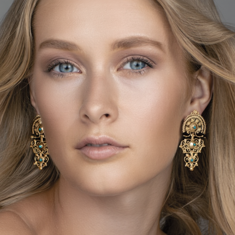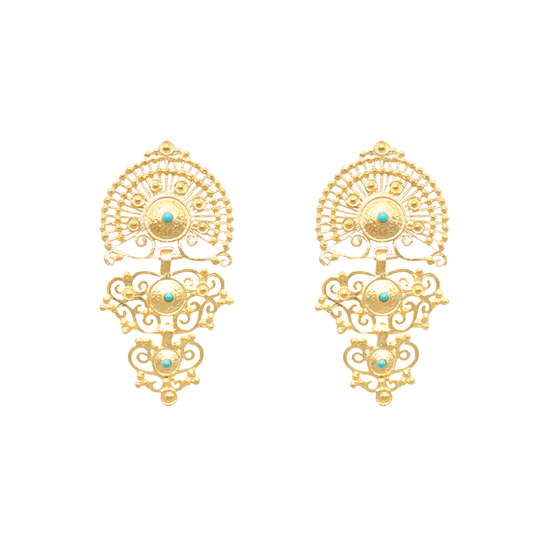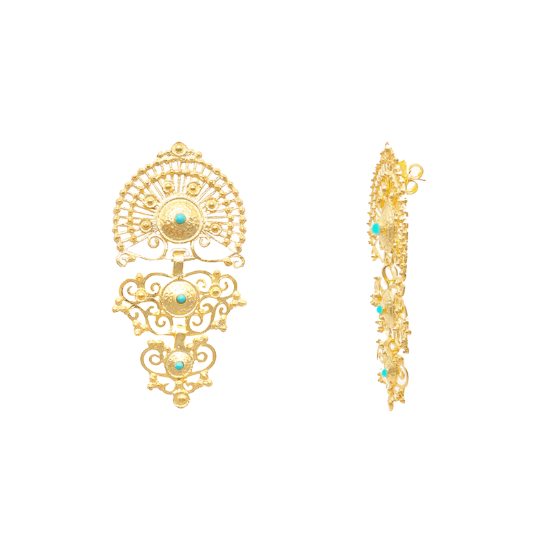 The Luminis 925 Gold-Tone Silver Earrings are a celebration of the splendor and exclusivity of Portuguese jewelry. The earrings feature a rich gold tone and aqua pearls that distinguish the piece with their touch of color. Each earring is a tribute to luxury, meticulously crafted by artisans in Portugal, with details that capture the essence of sophistication. The bold design of the Luminis Earrings exudes confidence and promises boldness and audacity.