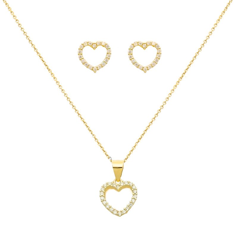 Gold Silver Necklace and Earrings Set with Heart and Zirconias