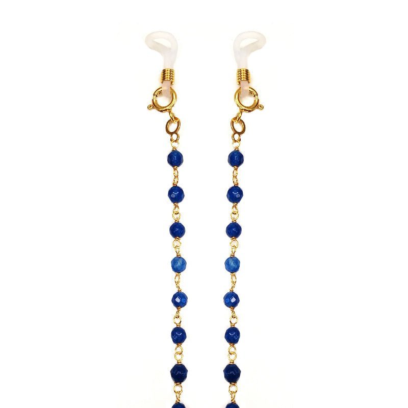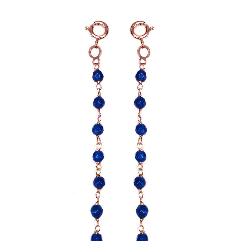 Available in Gold 925 Silver or Rose Gold 925 Silver, with dark blue synthetic faceted beads.