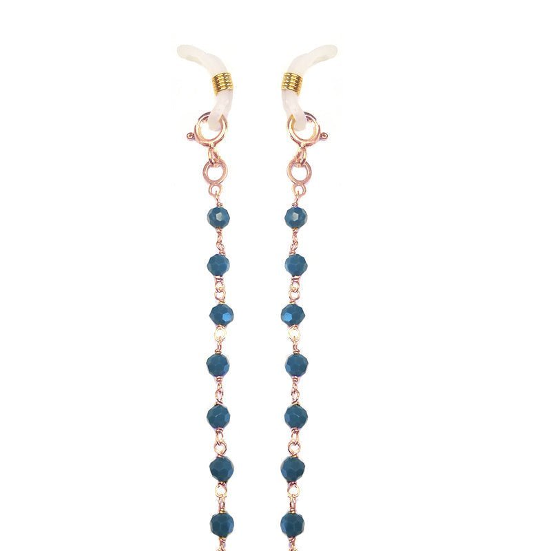 Available in Gold 925 Silver or Rose Gold 925 Silver, with cut synthetic beads in petroleum blue.